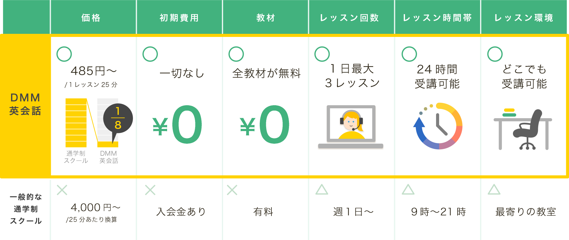 通学制英会話スクールとの比較