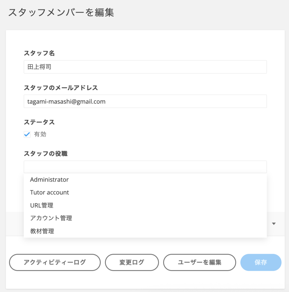 <管理画面のユーザーへの「スタッフの役職」付与>
