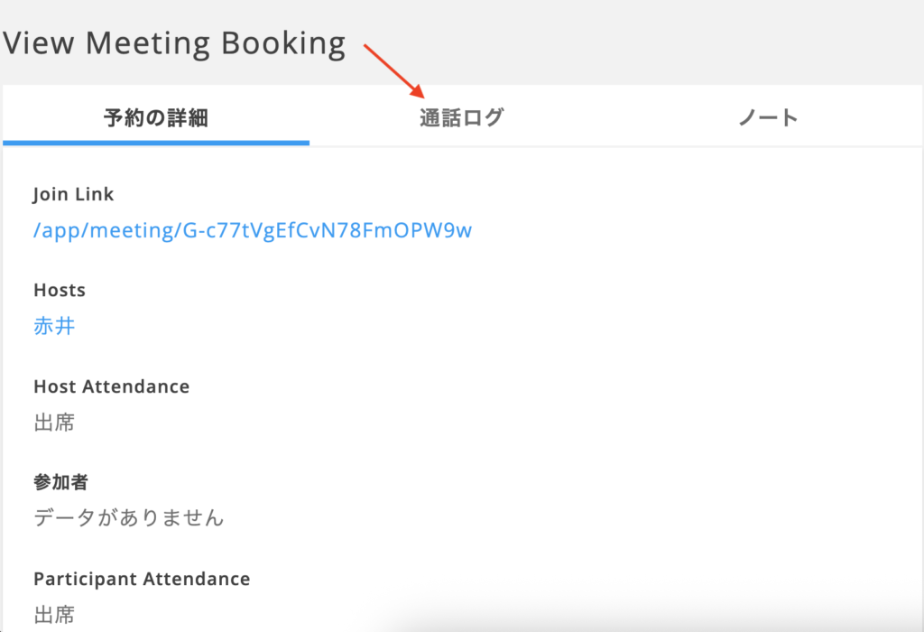 ミーティング予約の一覧ページからアクセスする場合、下記の操作をお願いします。