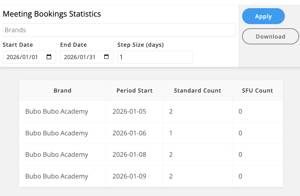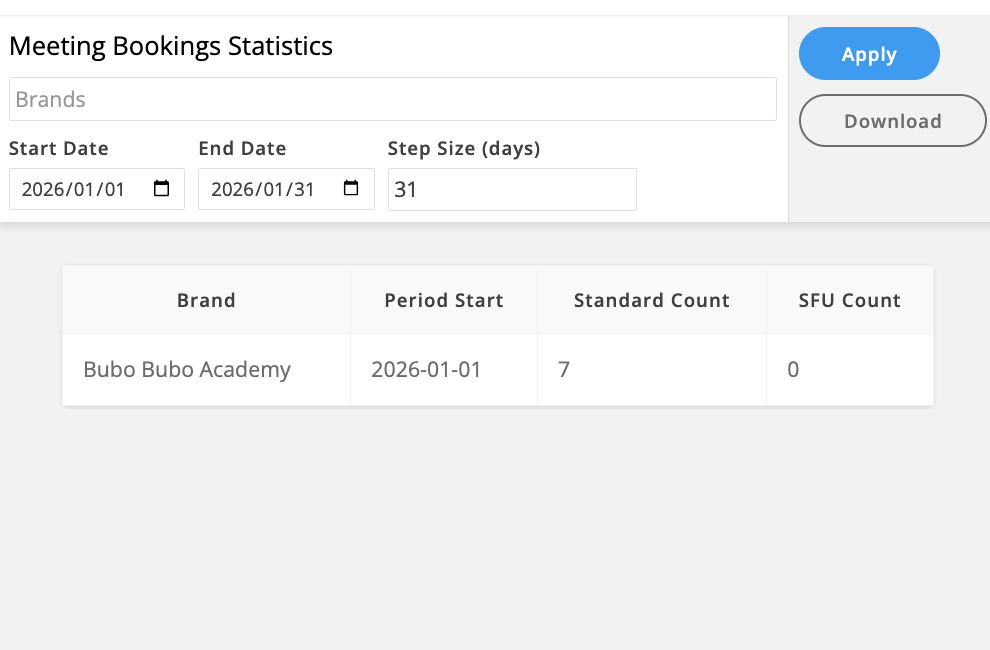 Start Date, End Dateで対象期間を指定し、Applyボタンを押すと、対象期間のURL発行数が表示されます。