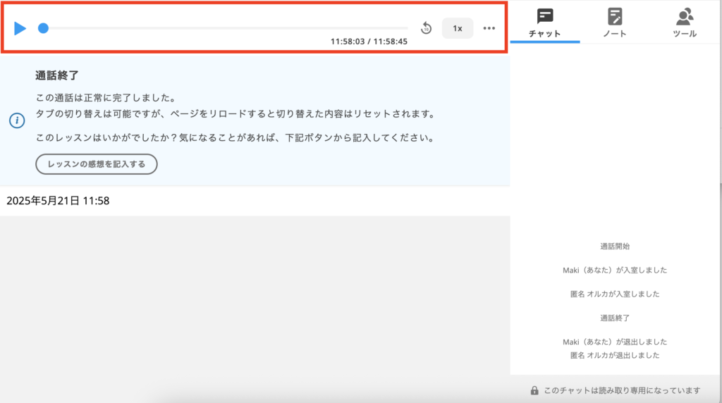 オンラインレッスンでは、講師が短い休憩を挟んで連続して授業を行うため、休憩の確保と自然な通話終了の両立が求められます。