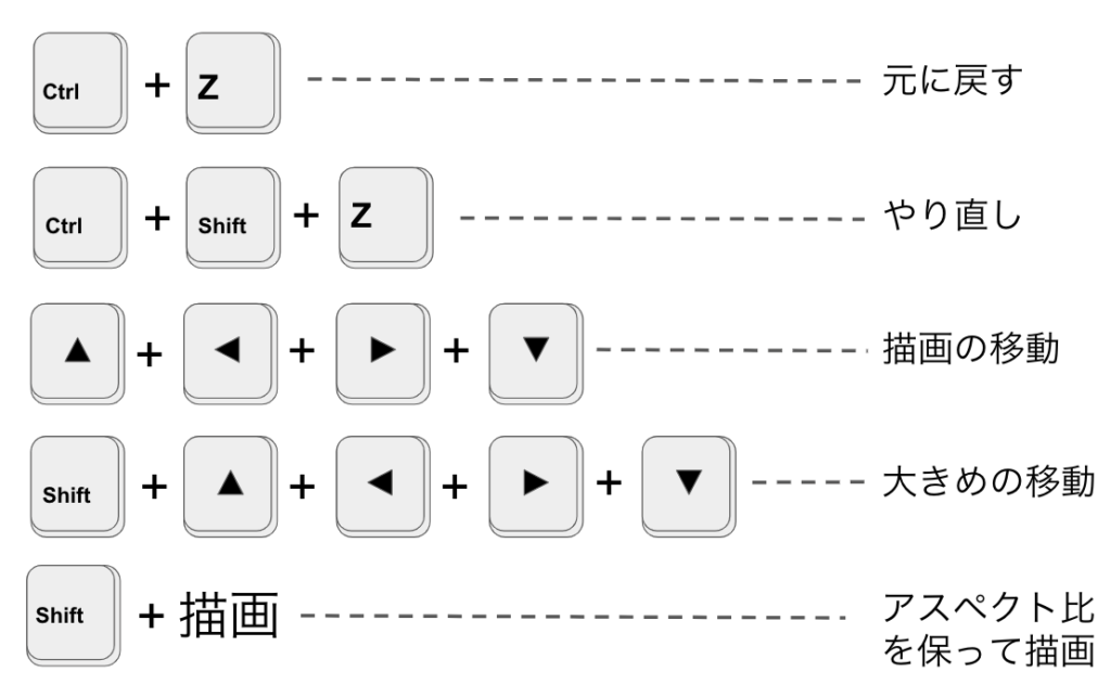 描画ツール内で使用できるショートカットキー