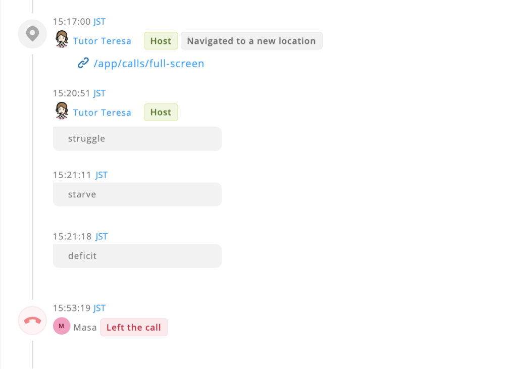 また、調べた単語は、相手(講師↔︎生徒)にも伝わるため、講師が生徒の代わりに辞書を引いて、日本語の意味を表示する、といった使い方もできます。