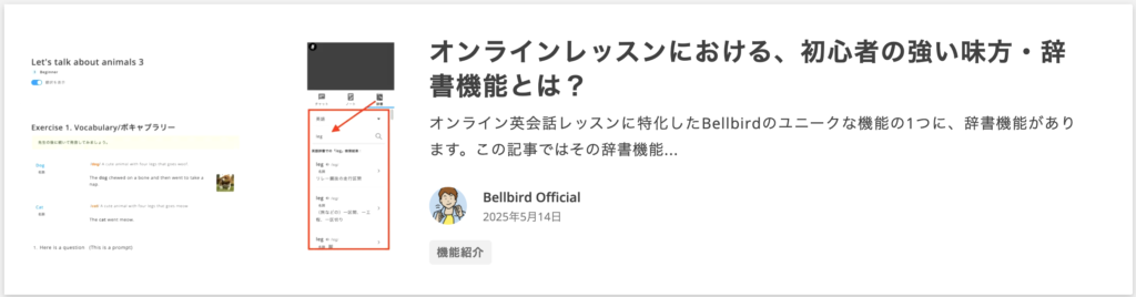 Bellbirdではビデオ画面上に辞書機能を搭載。
