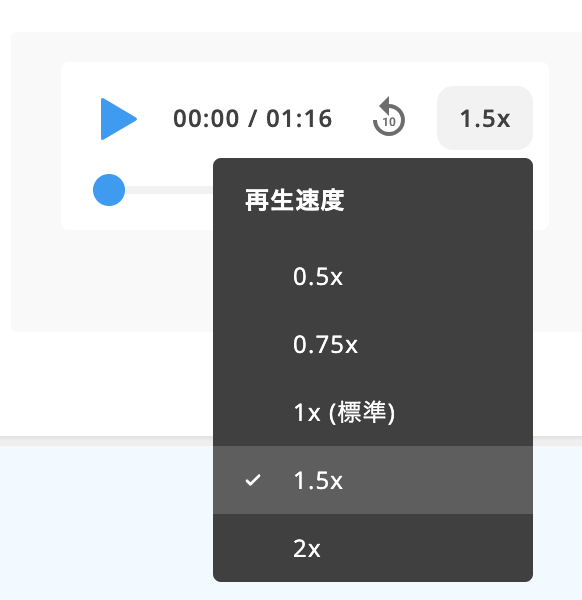 これにより、速度を変えた反復再生や部分的な繰り返しが簡単に行え、学習者の理解度やレベルに応じた音声学習を提供できます。