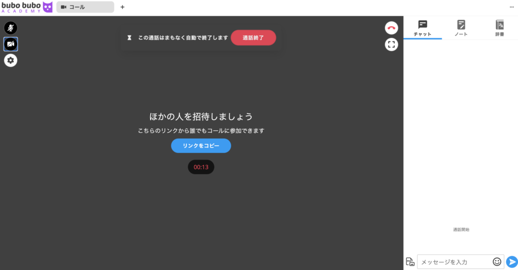 レッスン時間とは区別される形で、通話終了後の猶予時間を通話参加者に与えることが可能です。