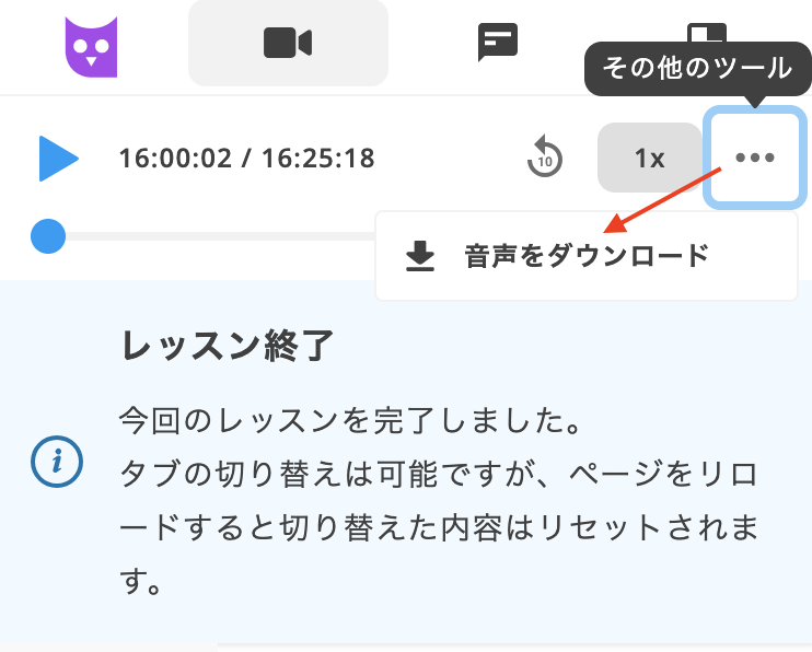 - 表示ページの「…」>「音声をダウンロード」を選択
