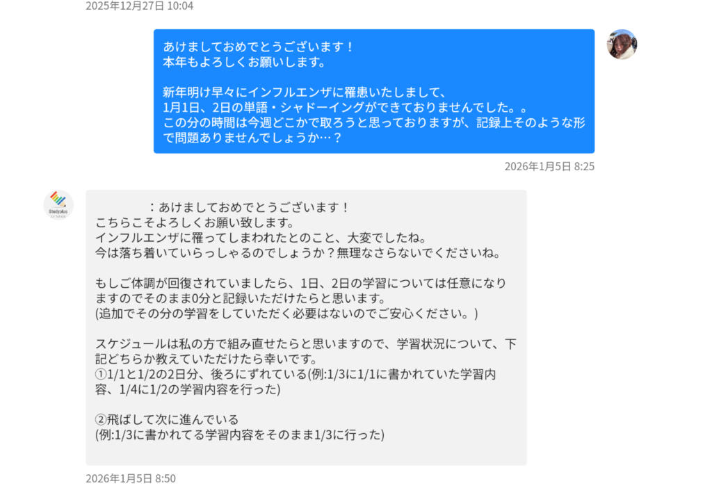 実は、仕事が忙しくて夜遅くなってしまう日が続いたことに加えて、インフルエンザにかかってしまい...。英会話の時間が全く取れない時期がありました。 これまでの私だったら、体調不良で一度学習がストップしてしまうと、そこでモチベーションが落ちてしまい、なかなか自分では復帰できなかったと思います。
