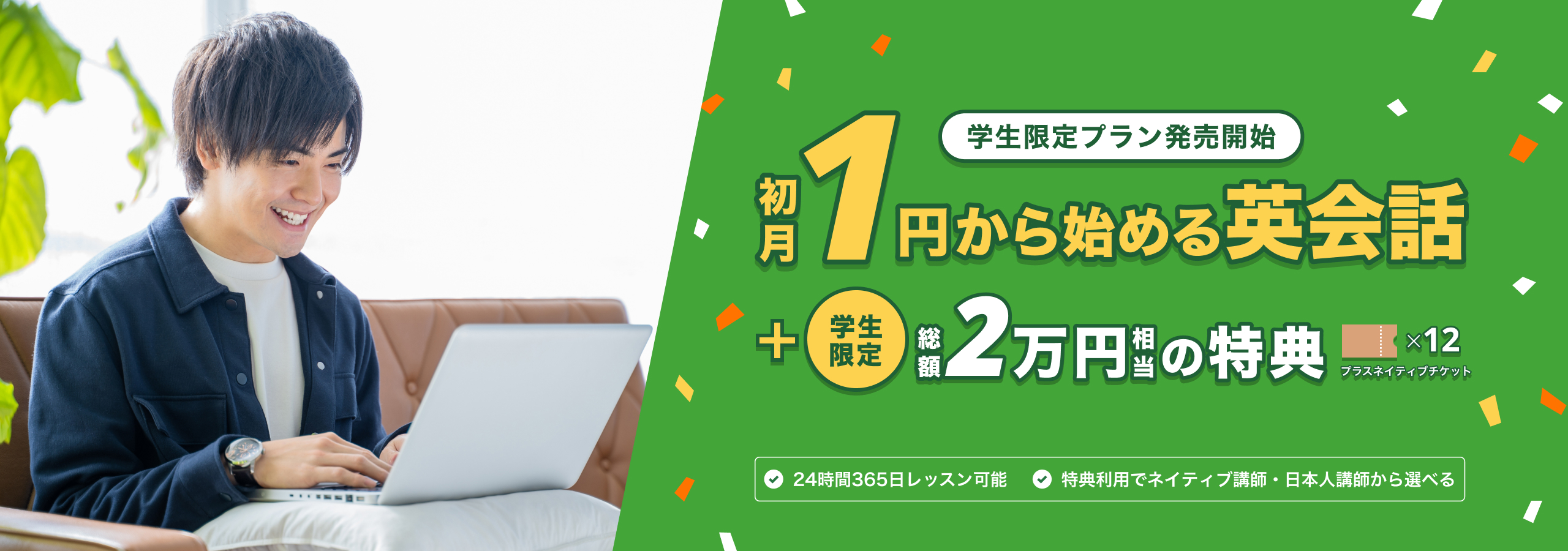 「初月1円」+「総額2万円相当の特典」は、学生だけ!