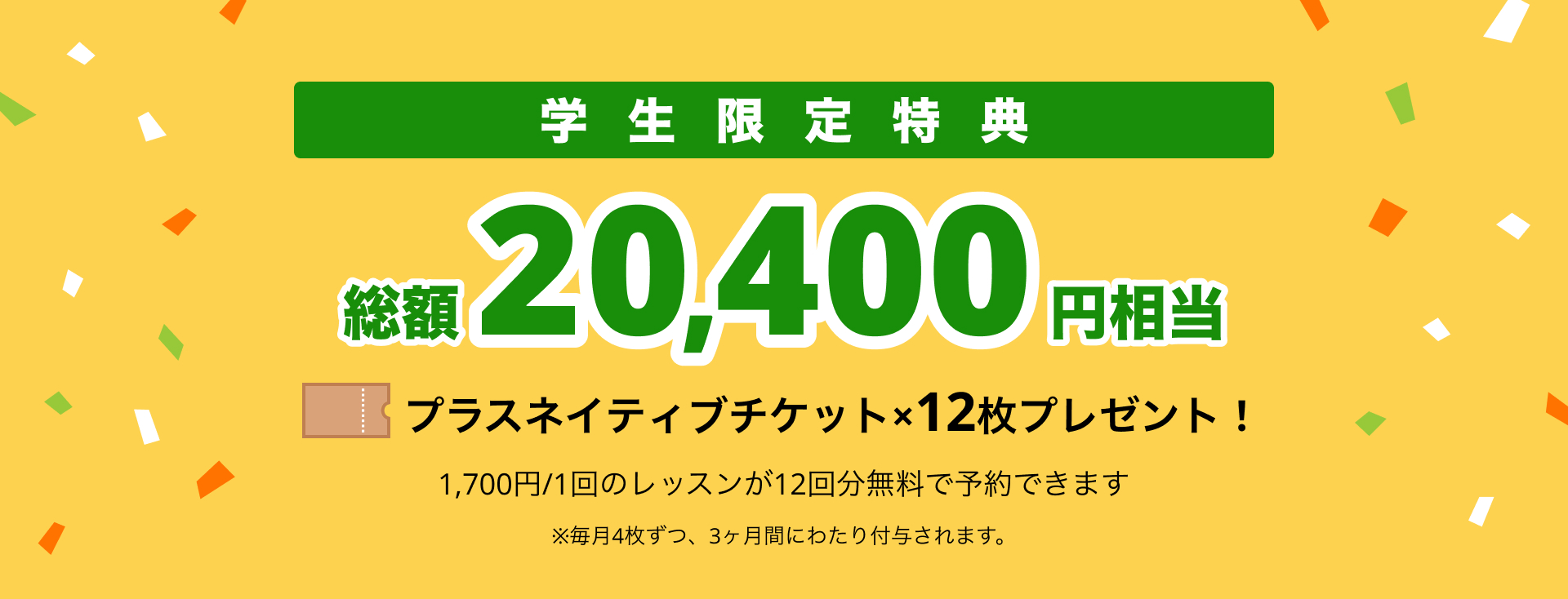 学生だけの限定特典